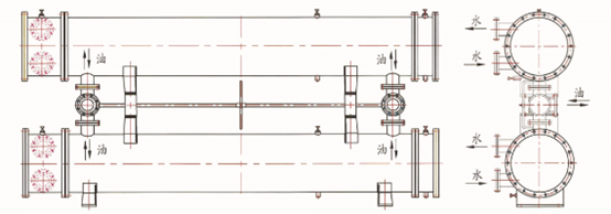管殼式換熱器采用雙聯(lián)結(jié)構(gòu),由兩只相同面積的冷油器和三通閥裝置構(gòu)成,一只工作,一只備用,每個冷卻器能承擔(dān)整個系統(tǒng)的冷卻負荷,管板一頭固定,一頭浮動、可拆卸的管束和水室箱蓋,便于運行過程中清洗、檢查和維修。管殼式換熱器材質(zhì),根據(jù)使用場所、水系統(tǒng)條件可有多種選擇。